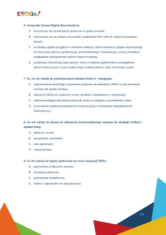8. Co nie należy do kluczy do włączenia zrównoważonego rozwoju do strategii, kultury i