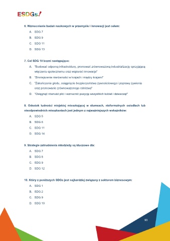 10. Który z poniższych SDGs jest najbardziej związany z sektorem biznesowym:
