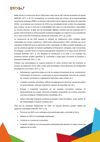 humanos (WBCSD, 2017, p. 10). Mediante su contribución a los ODS y a la sociedad, las