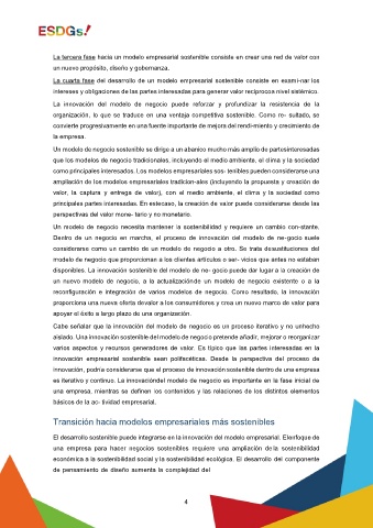 La cuarta fase del desarrollo de un modelo empresarial sostenible consiste en exami- nar los