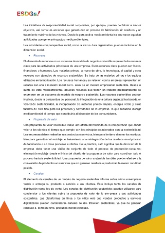 enumeran en un esquema de modelo de negocio sostenible. Los recursos sostenibles podrían