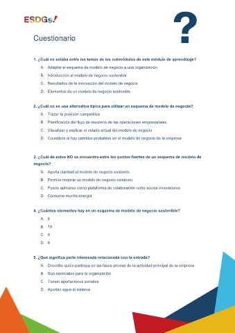 4. ¿Cuántos elementos hay en un esquema de modelo de negocio sostenible?
