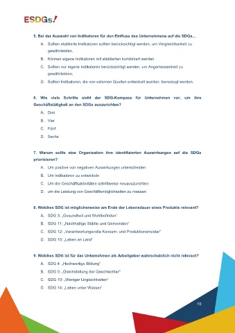 5. Bei der Auswahl von Indikatoren für den Einfluss des Unternehmens auf die SDGs...