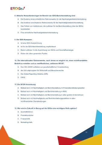 8. Aktuelle Herausforderungen im Bereich der SDG-Berichterstattung sind: