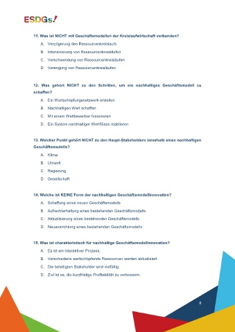 12. Was gehört NICHT zu den Schritten, um ein nachhaltiges Geschäftsmodell zu
