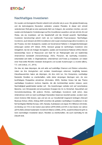 einbezogen werden (EY Global, 2020). Genauer gesagt ist nachhaltiges Investieren eine