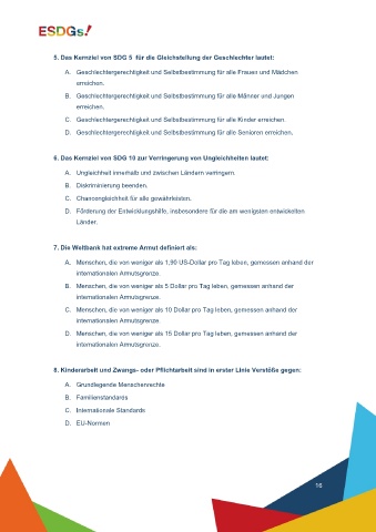 5. Das Kernziel von SDG 5 für die Gleichstellung der Geschlechter lautet: