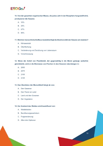 12. Wenn der Anteil von Plastikmüll, der gegenwärtig in die Meere gelangt, weiterhin
