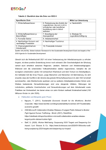 Tabelle 2: Überblick über die Ziele von SDG 8