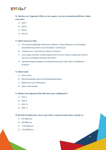 10. Welches der folgenden SDGs ist am engsten mit dem privatwirtschaftlichen Sektor